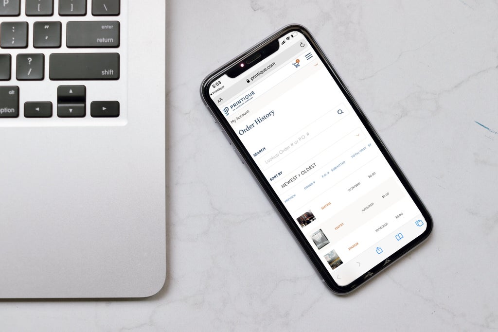 By clicking the Order History button on our mobile app, you’ll jump directly to your account’s past orders. We love this feature for quick order check-ins or reviewing large orders with clients.