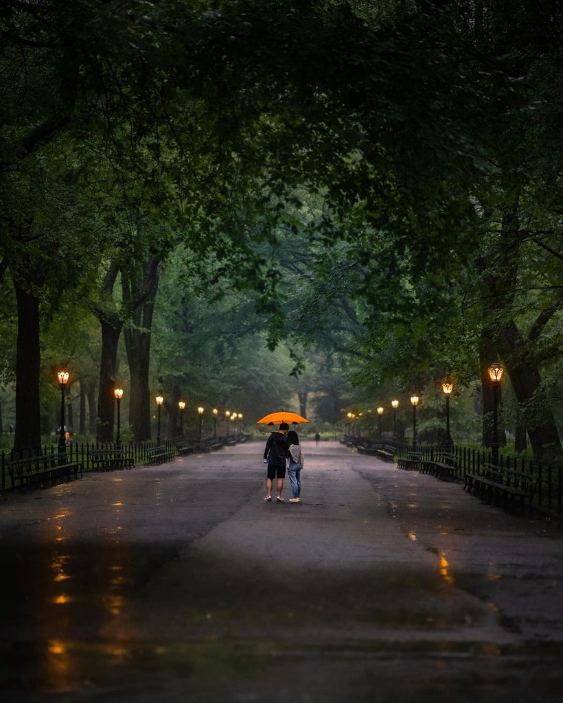 We undoubtedly see Kunkel’s originality in her work, and in her captures of even the city’s most signature shooting locations, from the Empire State Building to Central Park. Take the photo below as an example: she elevates a regularly photographed Central Park setting by utilizing symmetry, dramatic lighting, and the stand-out color of a bright yellow umbrella. No longer is this a replicable Central Park shot, but a one of a kind moment captured between two people who found seclusion on stormy streets.