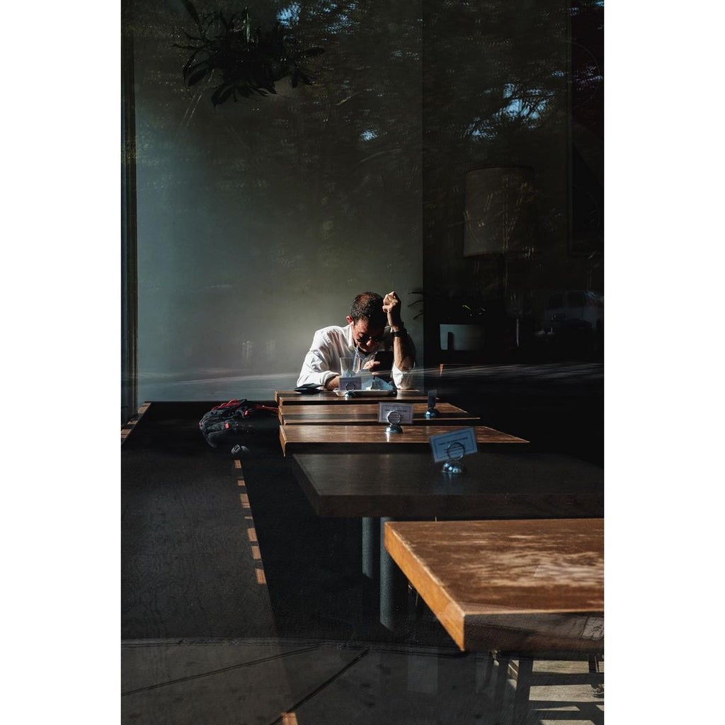 We also especially commend the explorations Peña has done with patterns in his photography – from capturing diner scenes decorated with the shadows of venetian blinds, to photographing patterned window panes in a New York City dive bar.