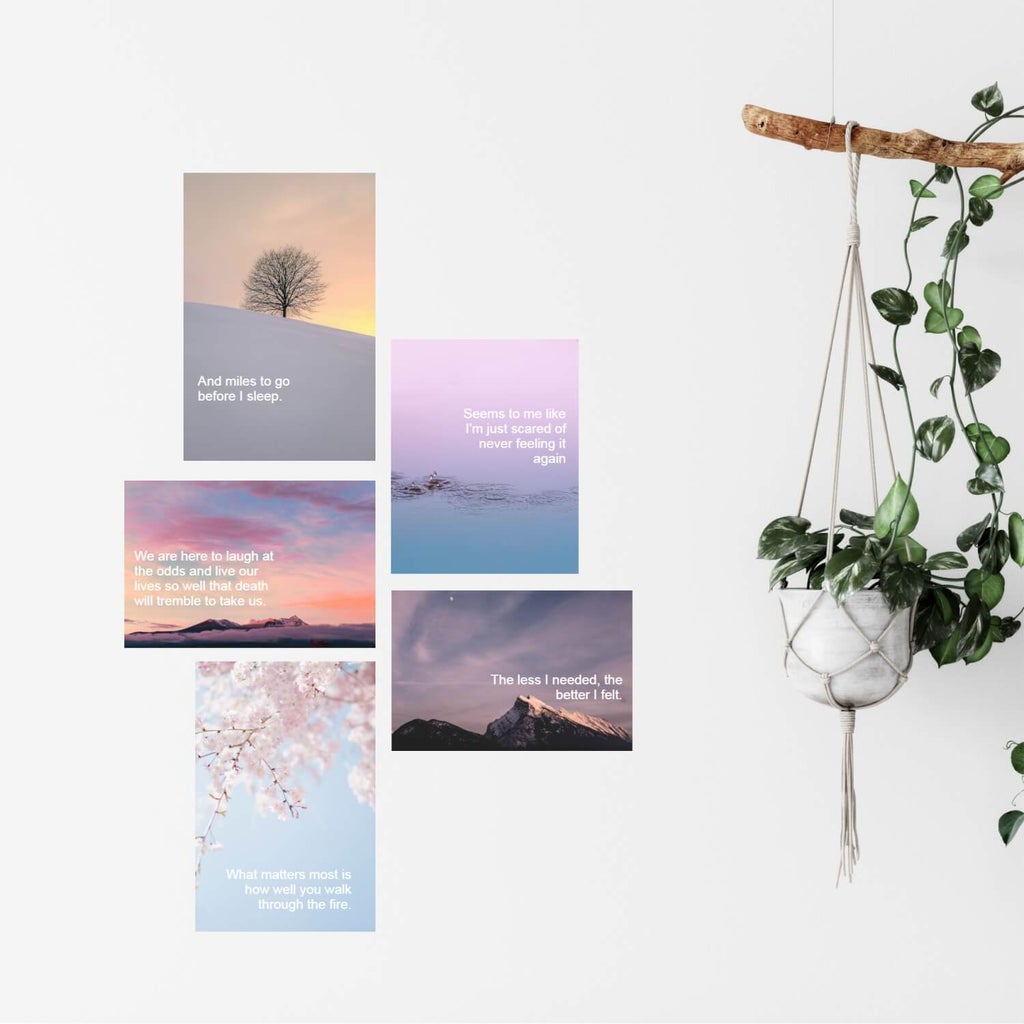 Open a photograph in any editing program with text layering capabilities, such as Canva or Pixlr. Then add the words you want printed in a legible font and color. You’ll be left with an aesthetically pleasing display of poetry or quotes of choice. Do this a handful of times and voila! – you’ll have yourself a poetry gallery that adds color and beauty to any room.