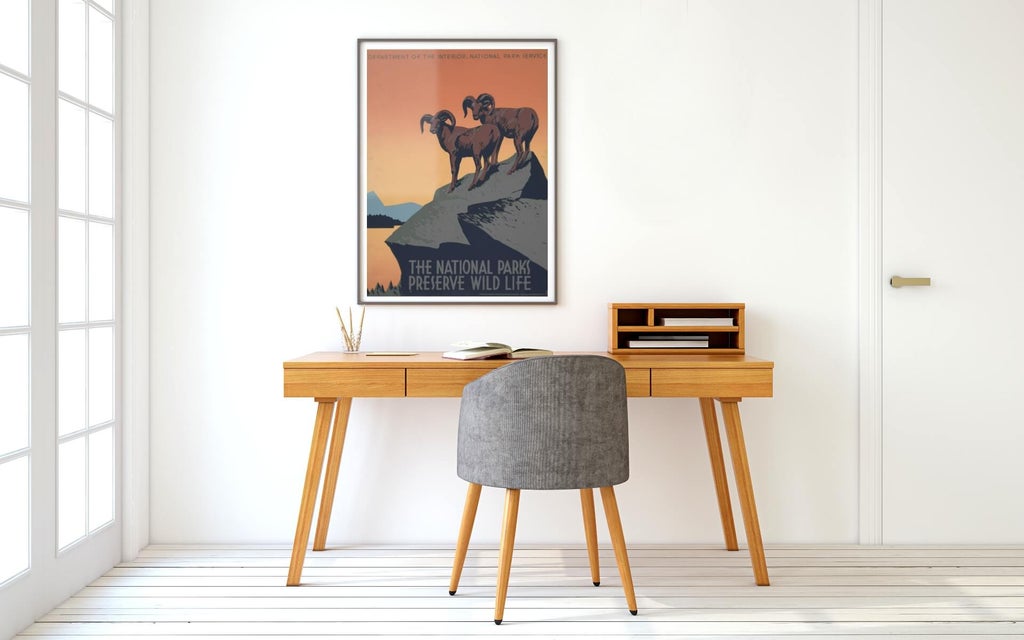 This gorgeous illustration of two big horned rams is one of our favorite free printables we’ve discovered so far. Its colorful backdrop gives it the perfect blend of vintage and modern, making it an incredible décor addition for any space. We would love to see this brilliant poster printed and framed like shown above!