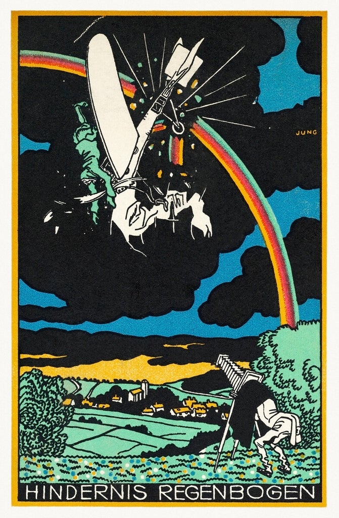 Originally designed for postcards, Jung’s lithographs and woodcuts are full of character, contrasting colors, and standout style. We were excited to learn that his numerous collections of one-of-a-kind illustrations belong to the public domain, meaning they’re free to download, print, and share however you please; we know you’ll find the perfect way to bring Jung’s artwork to life!