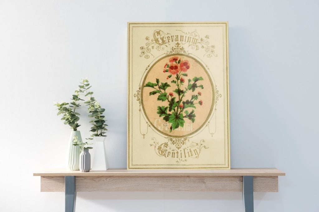 The detailed foliage and colorful blossoms of this geranium illustration caught our eye – and stole our hearts! With “gentility” as geranium’s symbolic meaning, written artistically beneath the illustration, this print is sure to bring a sense of calm and peace to any room.