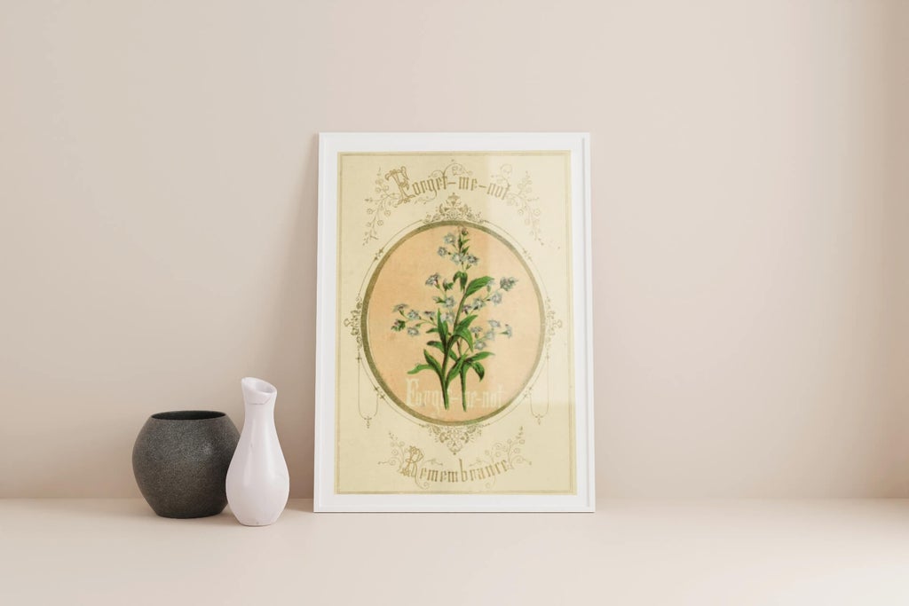 What’s sweeter than the nostalgic forget me not flower? Invite this sentimental flower into your space with this aesthetic and artistic free printable, dashed with baby blues. We also love the way the word “remembrance” is scrawled across the bottom of this print.