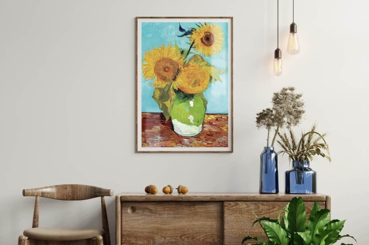 If you love sunflowers and what they symbolize, Van Gogh is the artist for you. With a number of sunflower still life paintings in his name, Van Gogh makes it easy to add decorative sunflower elements to your space; But if we had to pick one, it would be this vase with three sunflowers!