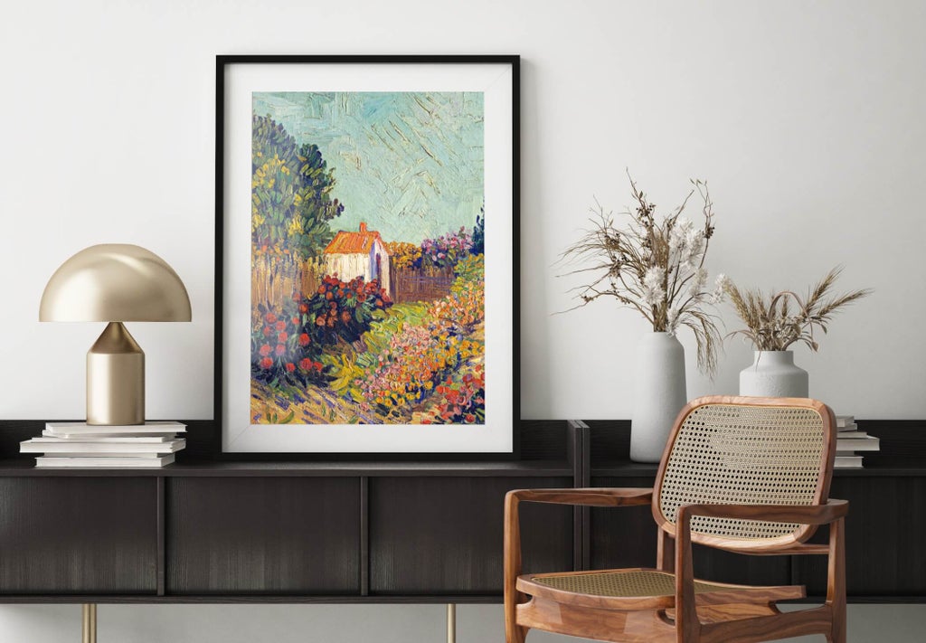 Satisfy your inner desire to live in a tiny cabin surrounded by rose bushes with this enchanting little painting. It veers from Van Gogh’s common use of vibrant blues and instead utilizes a softer, quainter palette. With its little splashes of red, it’s a beautiful way to add a sense of calm and reverie to a frequented space.