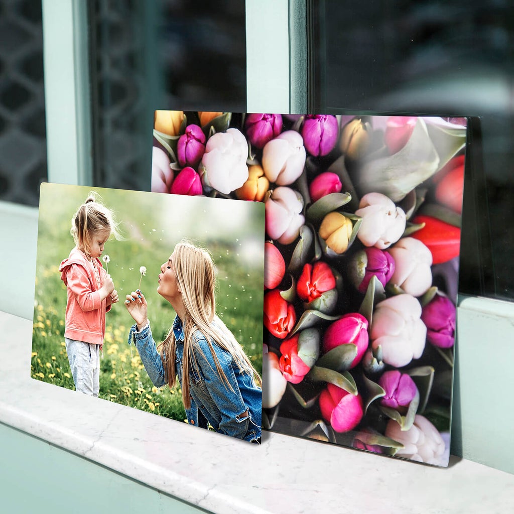 Ordering hang-free prints for Mom’s workspace is a thoughtful way to make sure her happiest memories accompany her everywhere she goes. Acrylic photo blocks are one of our favorite ways to gift stand-on-their-own photos. Chic and shimmering, they’re fit to add elegance to any space. Our metal prints can also be printed with built-in easels for easy placement on desks or shelves.