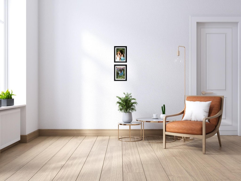 Next, you’ll want to add your frameless prints diagonally across from each other, creating a somewhat jagged square shape.