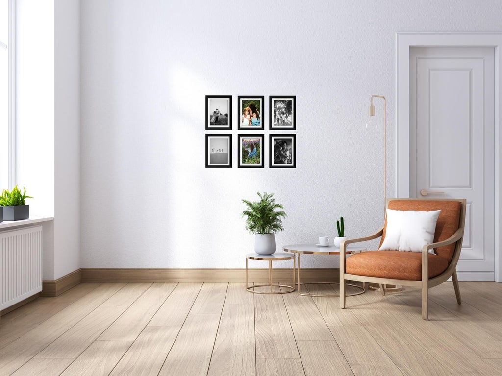 If you’ve ever bought frames, you know they can be pricey! We recommend getting a set of simple black frame prints with white matting included to stay within budget while nailing the high end look. Floating frames can also have a beautiful appearance, especially if your gallery will be hanging in an area that receives natural sunlight! Stores like Michael’s, Walmart, and Target often offer great deals on framing.