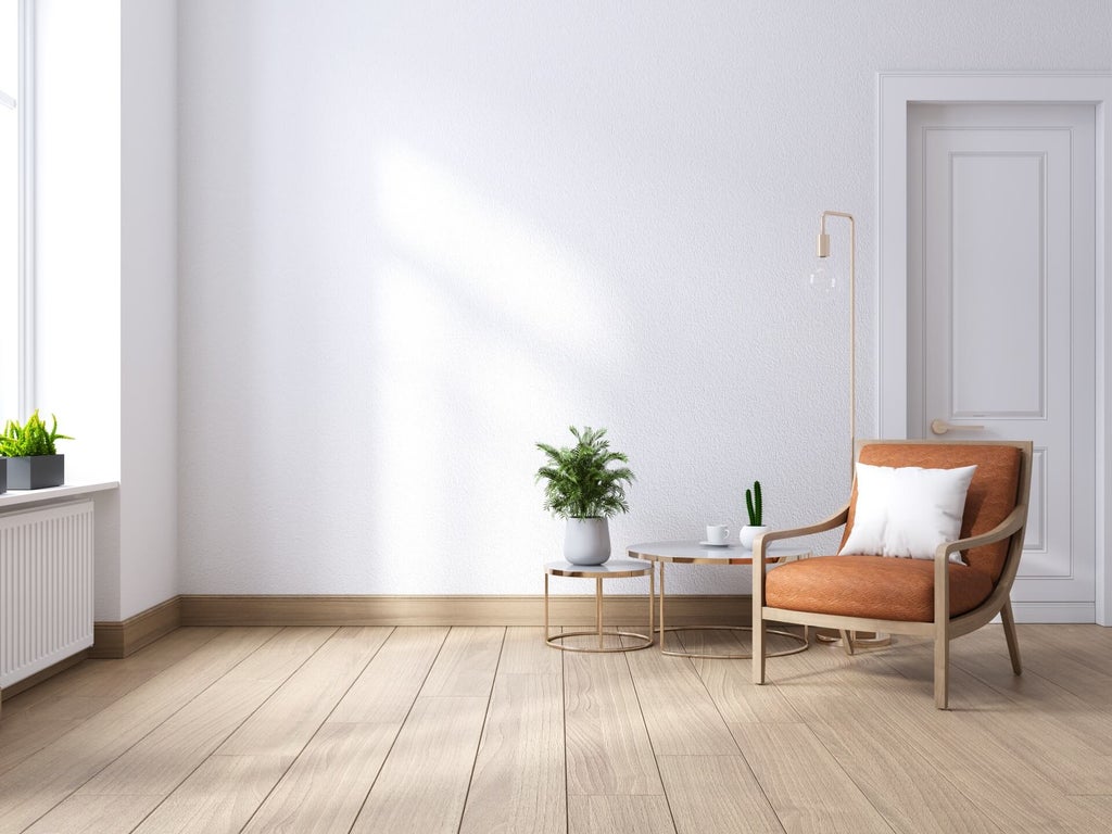 Begin by identifying a decently large empty space in your home. In the best case scenario, the room will be anchored by a few pieces of furniture, as pictured above. See how that wall space is just begging to be decorated?