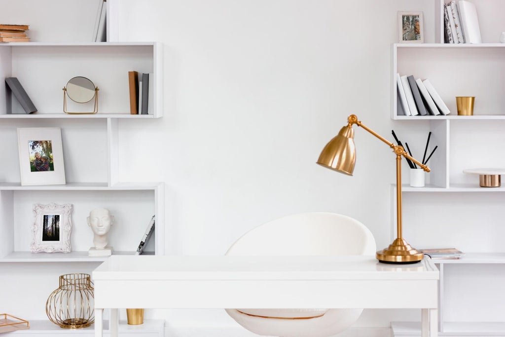 If the shelves you’re redecorating are home to a lot of products that can’t be done away with, try filling the lowest row of your shelving with concealed boxes. Match the aesthetic of these boxes to your frames or shelving color and load them up with all the papers, books, and knick-knacks that have no where else to go.