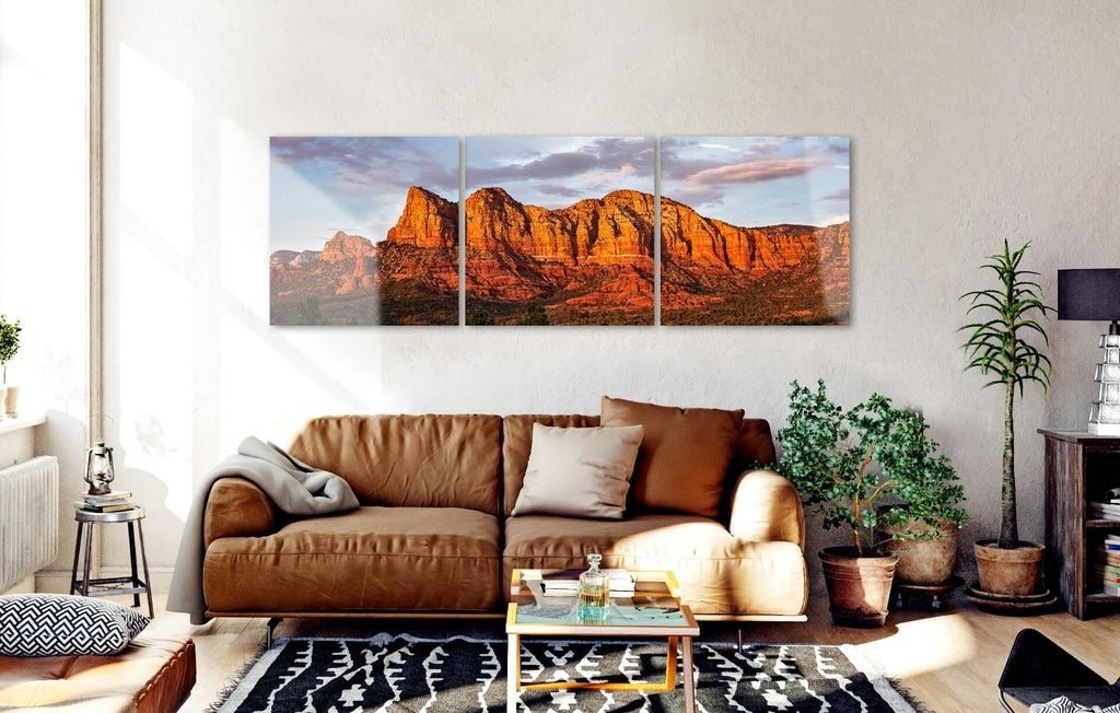 When hanging a metal print, we recommend using French cleats. A French cleat is a molding with a 30–45 degree slope used to efficiently support heavy weights. Once you decide where you want to place your hanging metal print – most museums agree that hanging art at eye level is the most pleasing – simply secure your French cleats to the wall. The mounting system on the back of the larger metal prints will fit to a French cleat. This will enable you to mount your best metal prints securely, without having to hold the full weight of the piece while securing it.