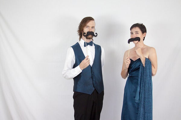 Another method guaranteed to create enchanting pictures is to get some “his and hers” props, matching accessories to demonstrate your lasting bond. They also make ideal table decor, and the rest of the wedding party can enjoy snapping their own matching photos throughout the reception.