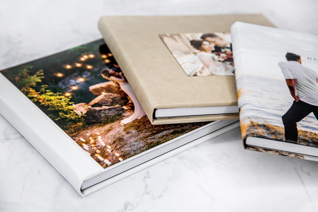 While a lot of emphasis goes toward the design of your wedding album’s inner pages – and rightfully so! – the best wedding photo album will be designed intentionally from cover to cover. This means paying close attention to the printing options you select for the outside of your album!